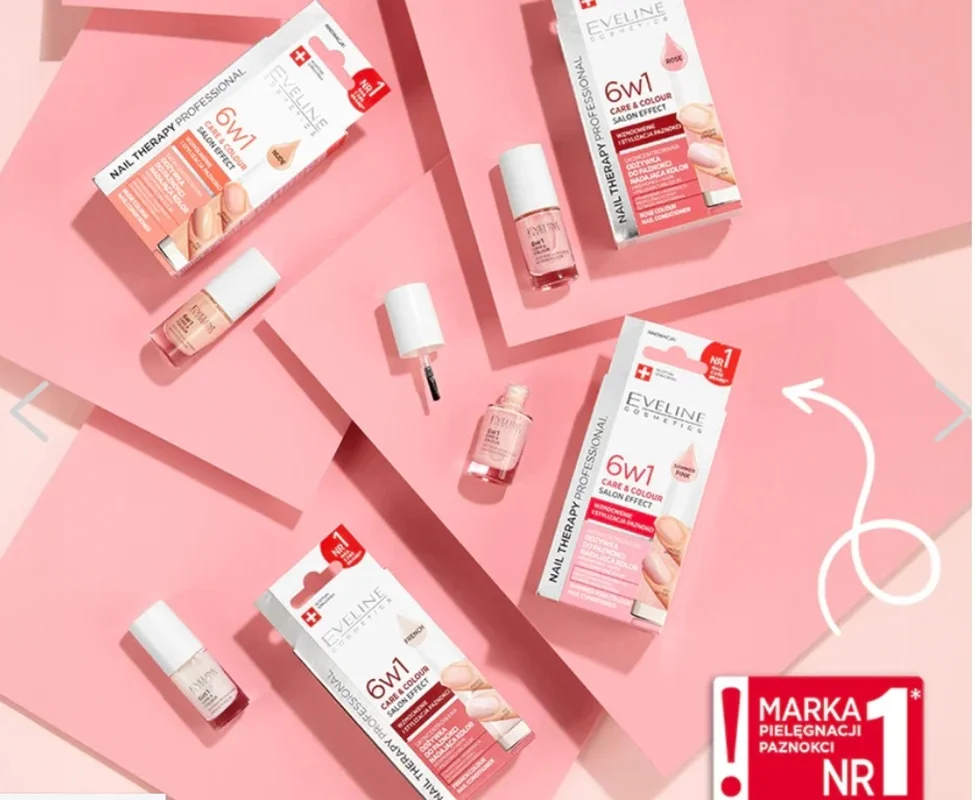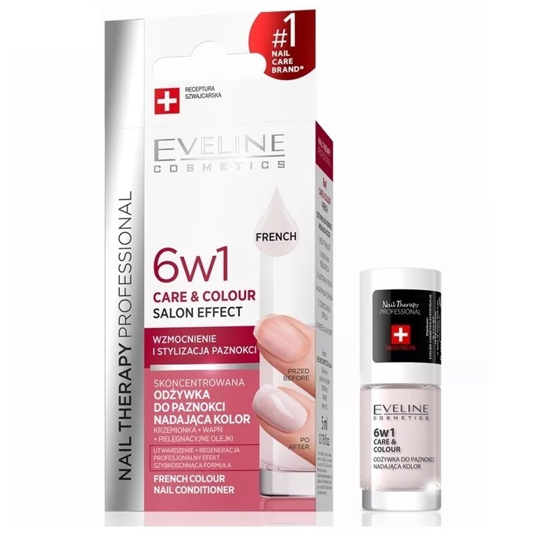 تقویت کننده 6 در 1 ناخن اولاین رنگ French یک محصول مراقبتی و رنگی برای ناخنها از برند معتبر لهستانی Eveline Cosmetics است. این محصول به عنوان یک عصاره غلیظشده ناخن با رنگ ۶ در ۱ طراحی شده و ترکیبی از مراقبت حرفهای و جلوه سالنی (مانند مانیکور فرانسوی) را در یک محصول ارائه میدهد. حجم آن ۵ میلیلیتر است و برای ناخنهای ضعیف، شکننده و آسیبدیده ایدهآل است. رنگ "French" معمولاً به سفید مرواریدی با تم صورتی روشن (با الهام از مانیکور فرانسوی) اشاره دارد که ظاهری طبیعی و شیک ایجاد میکند.