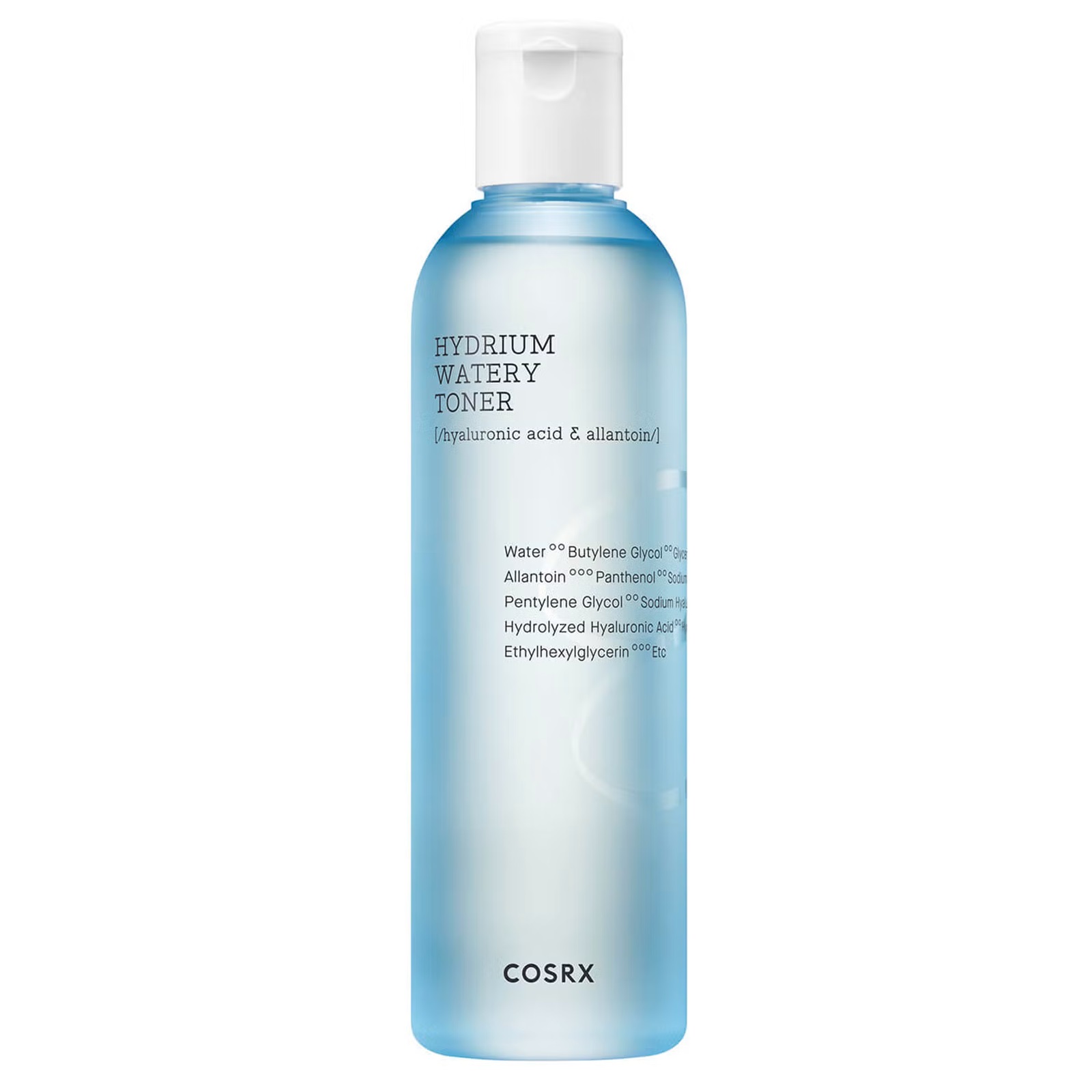 تونر مرطوب کننده هیدریوم کوزارکس یک تونر مرطوبکننده سبک و آبکی از برند کرهای Cosrx است که بخشی از خط تولید Hydrium برای هیدراته کردن پوستهای خشک، حساس و مختلط طراحی شده است. این محصول با فرمول مینیمال (حداقل مواد) و بدون الکل، پارابن، سولفات و عطر، بر پایه اسید هیالورونیک و ویتامین B5 (پانتنول) ساخته شده و هدف اصلیاش آبرسانی عمیق، تسکین التهاب و آمادهسازی پوست برای مراحل بعدی روتین مراقبت پوستی است. این تونر به عنوان "شیشه آب تازه برای پوست" توصیف میشود و پوست را بدون حس چسبندگی، تازه و درخشان میکند.