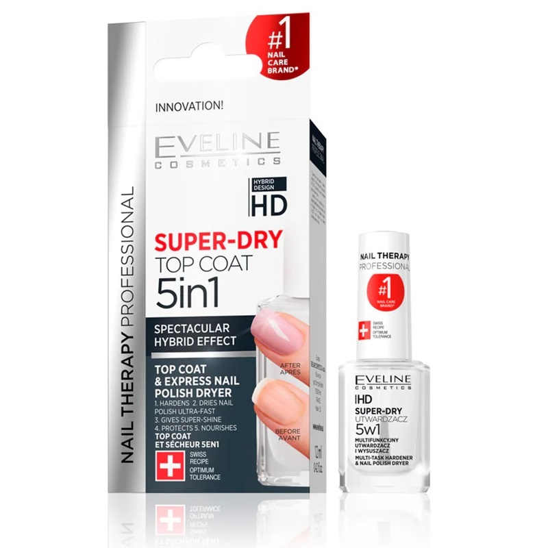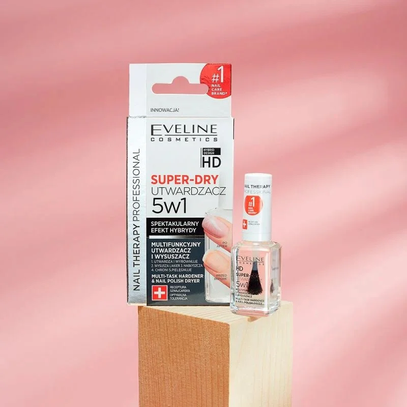خشک کننده سریع لاک ناخن 5 در 1 اولاین یک محصول چندکاره و حرفهای از برند لهستانی Eveline Cosmetics است که به عنوان یک تاپ کت (لاک محافظ) و خشککننده سریع لاک ناخن عمل میکند. این محصول بر پایه فرمول پلیمری ویژه با فیلترهای UV ساخته شده و حاوی روغن بادام شیرین مغذی است که به تقویت و مراقبت از ناخنهای ضعیف و شکننده کمک میکند. حجم آن ۱۲ میلیلیتر است و ۱۰۰% وگان میباشد. این محصول به ویژه برای کسانی که از لاکهای معمولی (غیر هیبریدی) استفاده میکنند، ایدهآل است، زیرا بدون آسیب به ناخن، مانکیور را مانند سالنهای زیبایی ماندگار میکند.