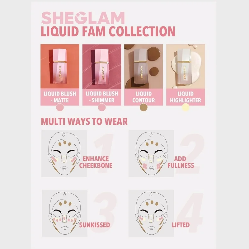 رژگونه مایع شیگلم دارای بافتی بسیار سبک ژل کرم، بوده که قابلیت پخش آسان بر روی پوست صورت را دارد و از ماندگاری طولانیمدت برخوردار میباشد.