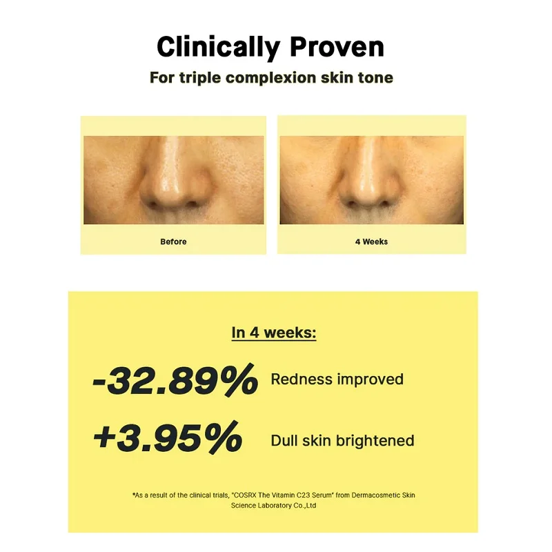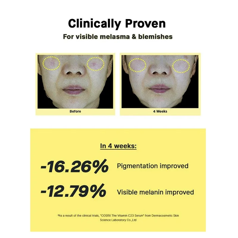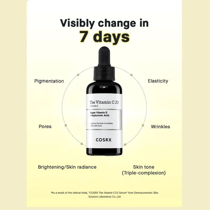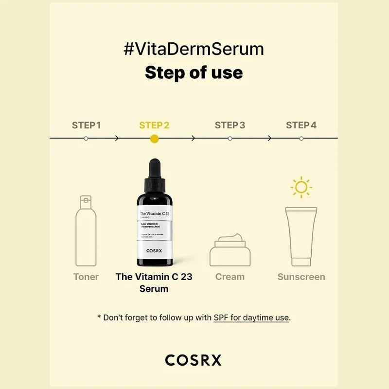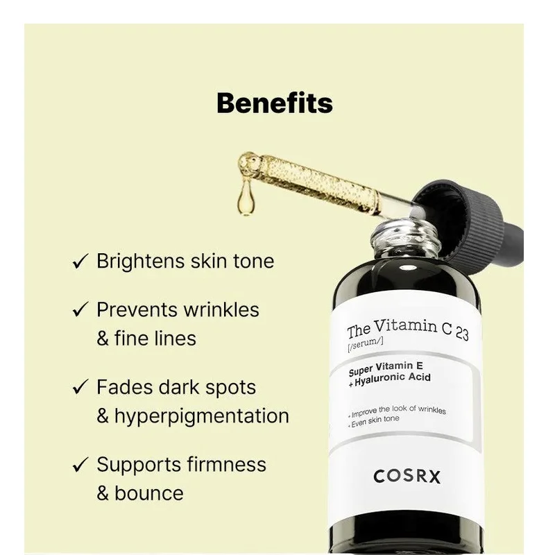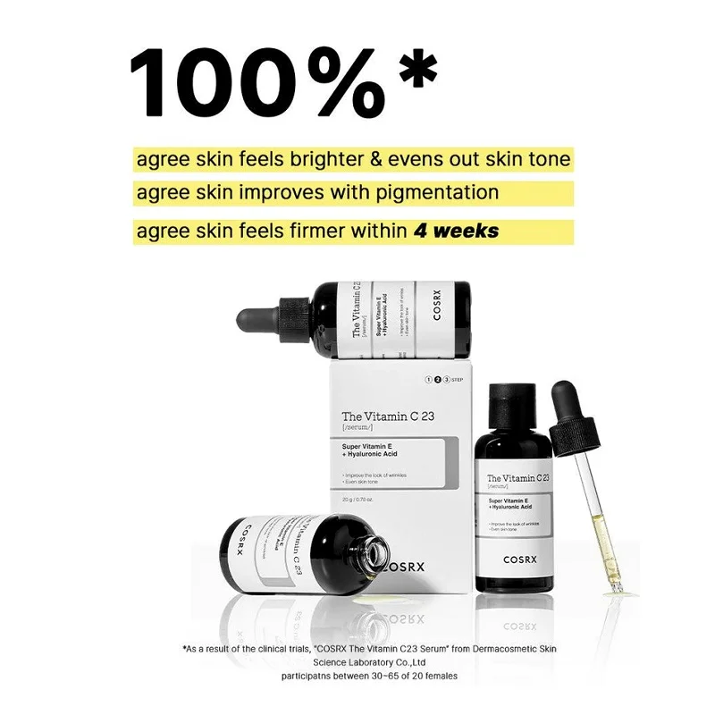 • %23 ویتامین سی خالص: آنتی اکسیدان، بهبود لک‌ها و روشن‌کننده، کاهش چین و چروک و افزایش خاصیت ارتجاعی