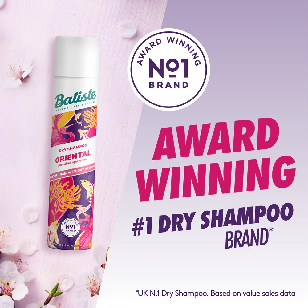 شامپو خشک باتیست مدل Oriental یک شامپو خشک محبوب از برند باتیست (پرفروشترین برند شامپو خشک در انگلیس) است که برای تازه کردن سریع موها بین شستشوهای معمولی طراحی شده. این محصول بدون نیاز به آب، چربی اضافی پوست سر و ریشه مو را جذب میکند، حجم و بافت طبیعی به موها میدهد و آنها را خوشبو و شاداب میسازد.