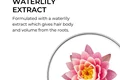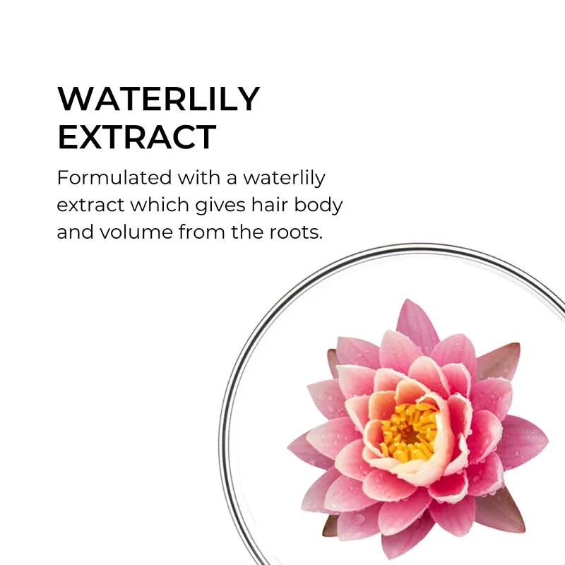 در فرمولاسیون آن از عصاره نیلوفر آبی استفاده شده که به موها حجم می دهد و همچنین وجود عصاره گل خطمی سفید در آن که براقیت موها را دو برابر افزایش می دهد.