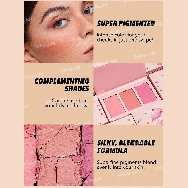 پالت رژگونه 3 رنگ شیگلم بخوبی نیاز شما را برطرف نموده و به راحتی می توانید از هر رنگ آن به تنهایی و یا با ترکیب با دیگر رنگ ها استفاده نمایید. این رژگونه ها دارای شدت رنگ و دوام زیادی بوده و فرمولاسیونی وگان داشته و در ترکیبات آن از الکل، عطر، گلوتن و پارابن استفاده نشده و همچنین بر روی حیوانات نیز تست نشده است.