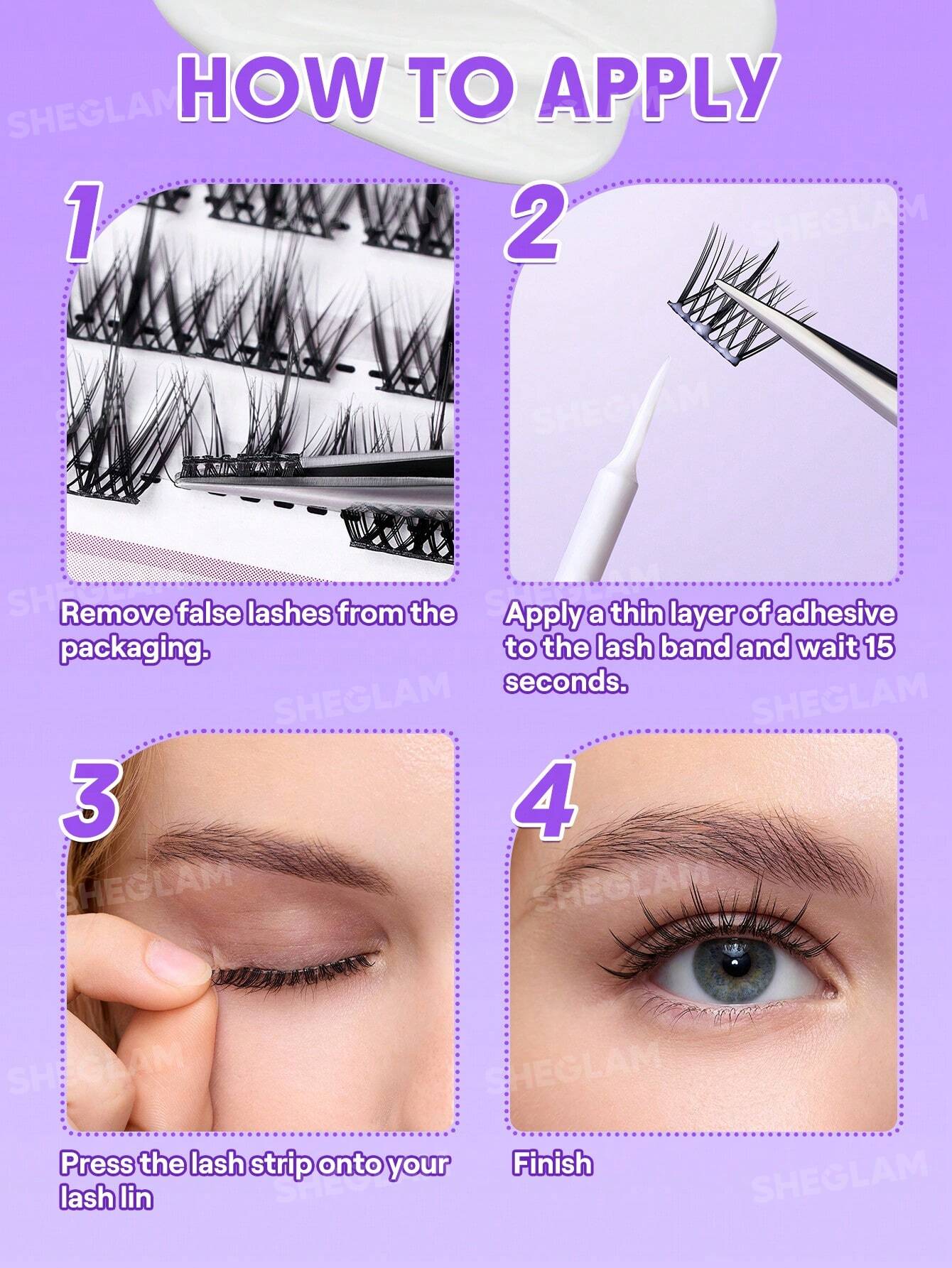۲. چسب زدن: با برس نازک (که همراه محصول هست) چسب رو مثل خط چشم روی خط مژههای طبیعیتون بکشید – نازک و یکنواخت، نه خیلی زیاد!