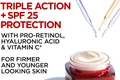 - پرو-رتینول (مشتقی از ویتامین A) به بهبود بافت پوست کمک میکند و با افزایش چرخه بازسازی سلولهای پوست، ظاهر چینوچروکها و خطوط ریز را کاهش میدهد. این ماده به طور خاص برای صاف کردن پوست و بهبود ناهمواریهای آن طراحی شده است.