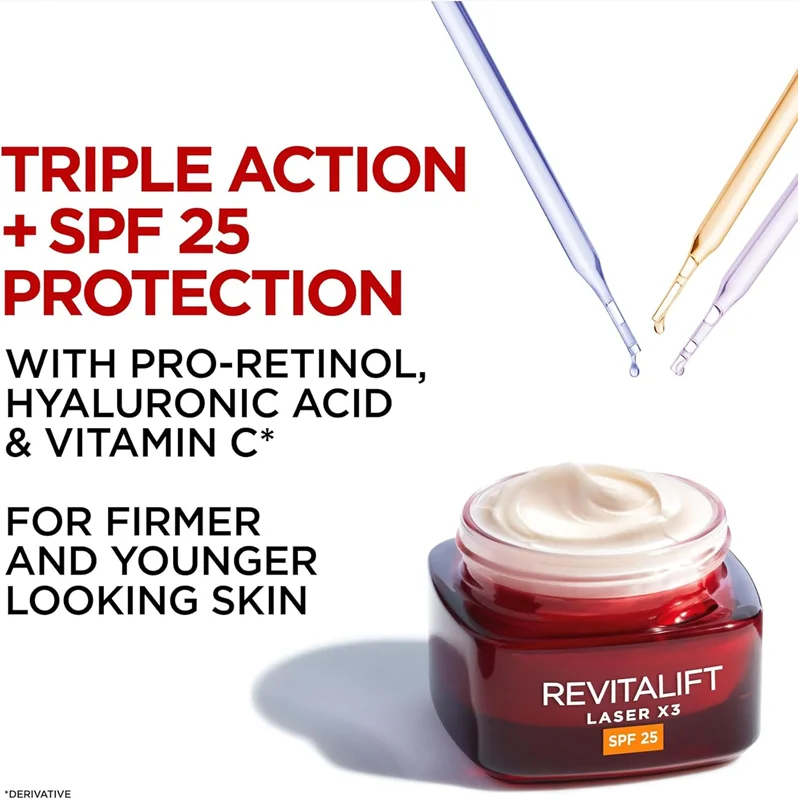 کرم روز ضد پیری قوی لورال مدل رویتالیفت لیزر 3 (Revitalift Laser Triple Action) با SPF25 یک محصول مراقبت از پوست با فرمولاسیون پیشرفته است که برای مبارزه با علائم پیری طراحی شده است. این کرم با بهرهگیری از سه ماده فعال کلیدی مورد تأیید متخصصان پوست، یعنی پرو-رتینول، اسید هیالورونیک و ویتامین C، عملکرد سهگانهای ارائه میدهد: کاهش چینوچروک، سفت کردن پوست و افزایش درخشندگی پوست. در ادامه به جزئیات بیشتری در مورد این محصول میپردازیم: